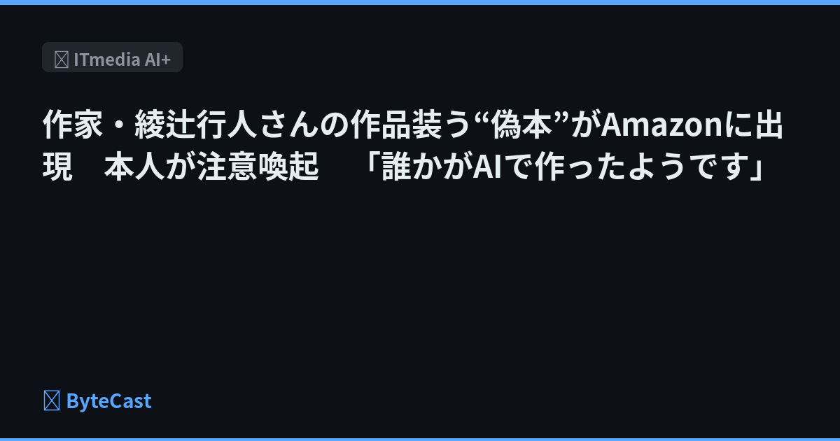 作家・綾辻行人さんの作品装う“偽本”がAmazonに出現 本人が注意喚起 「誰かがAIで作ったようです」