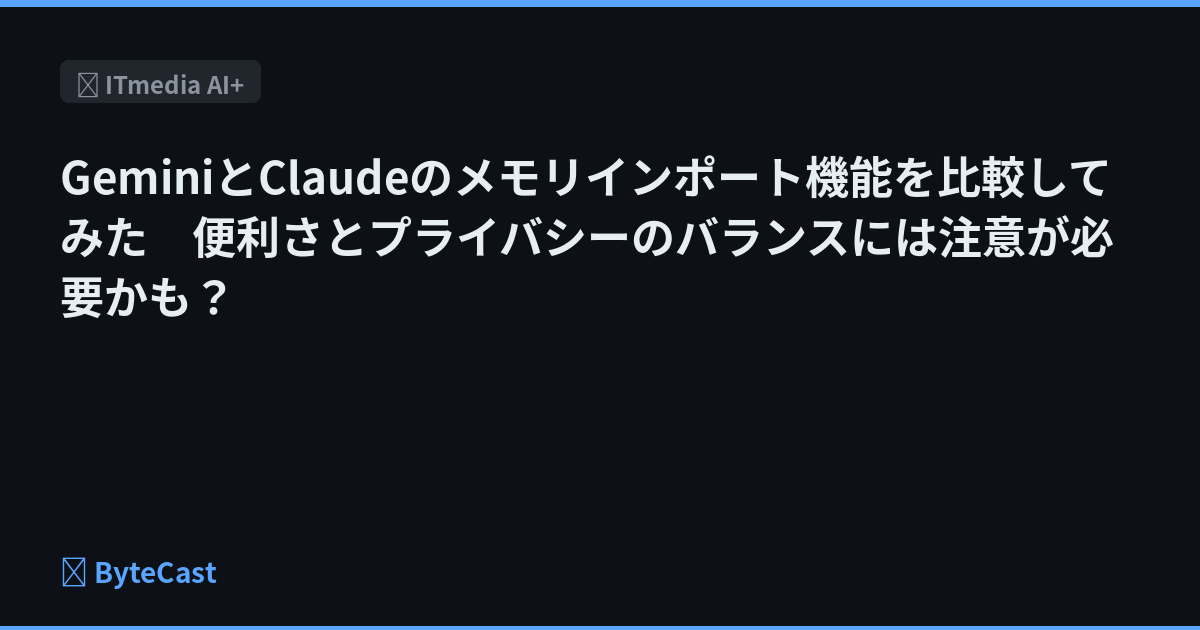 GeminiとClaudeのメモリインポート機能を比較してみた 便利さとプライバシーのバランスには注意が必要かも?