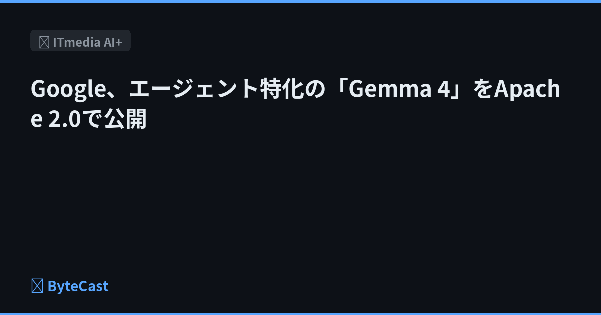Googleは、高性能オープンモデル「Gemma 4」をApache 2.0ライセンスで公開した。エージェント型ワークフローに特化し、最大25.6万トークンのコンテキストウィンドウに対応。モバイル向けの軽量版から31Bの大型モデルまで4種を展開する。