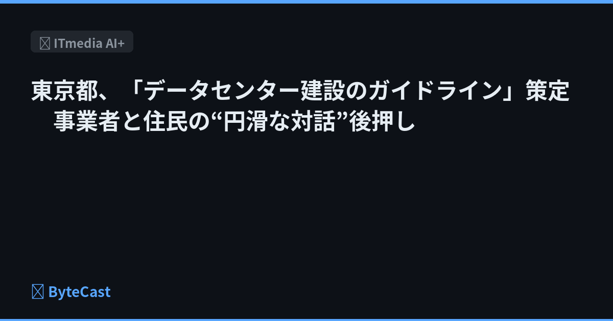 東京都は、データセンター建設のためのガイドラインを策定したと発表した。