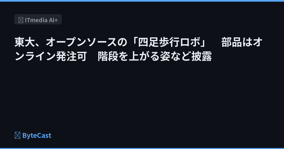 東大、オープンソースの「四足歩行ロボ」 部品はオンライン発注可 階段を上がる姿など披露