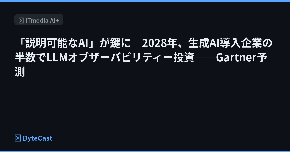 Gartnerは、2028年までに生成AIを導入する企業の50%が、LLMオブザーバビリティー(可観測性)に投資すると予測した。