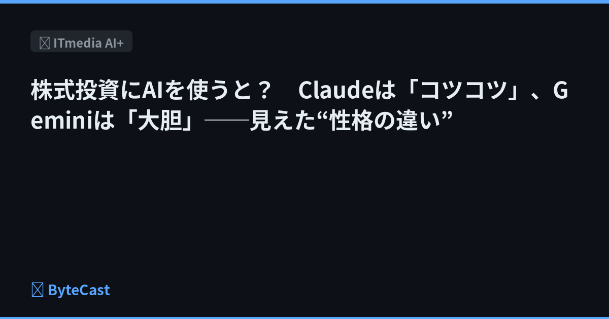 株式投資にAIを使うと? Claudeは「コツコツ」、Geminiは「大胆」──見えた“性格の違い”