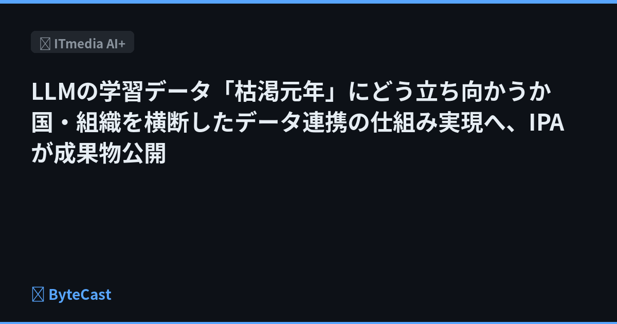 LLMの学習データ「枯渇元年」にどう立ち向かうか 国・組織を横断したデータ連携の仕組み実現へ、IPAが成果物公開