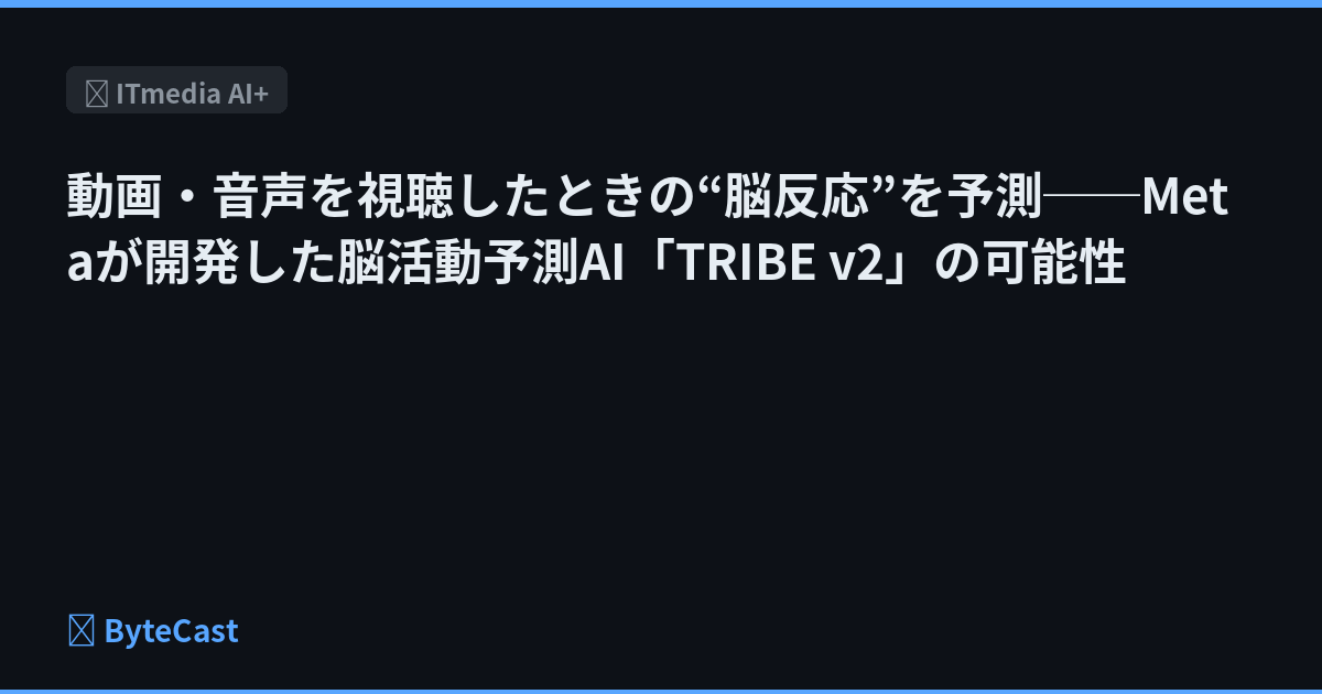 米Metaなどに所属する研究者らが発表した論文「A foundation model of vision, audition, and language for in-silico neuroscience」は、人間の脳活動を予測する基盤モデル「TRIBE v2」を発表した研究報告だ。