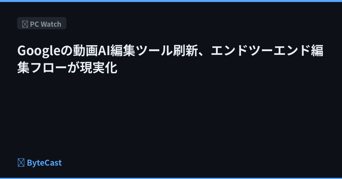 Googleの動画AI編集ツール刷新、エンドツーエンド編集フローが現実化