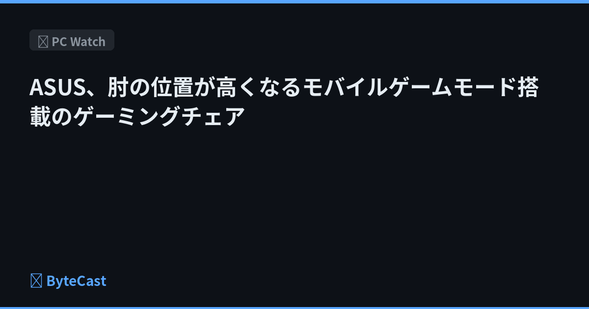 ASUS、肘の位置が高くなるモバイルゲームモード搭載のゲーミングチェア