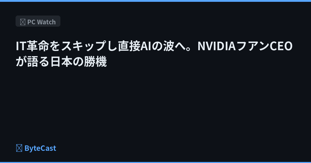 IT革命をスキップし直接AIの波へ。NVIDIAフアンCEOが語る日本の勝機