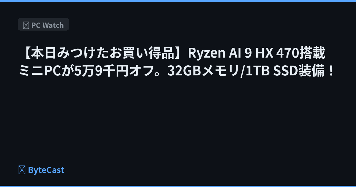【本日みつけたお買い得品】Ryzen AI 9 HX 470搭載ミニPCが5万9千円オフ。32GBメモリ/1TB SSD装備!