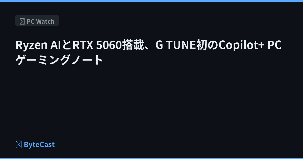 Ryzen AIとRTX 5060搭載、G TUNE初のCopilot+ PCゲーミングノート