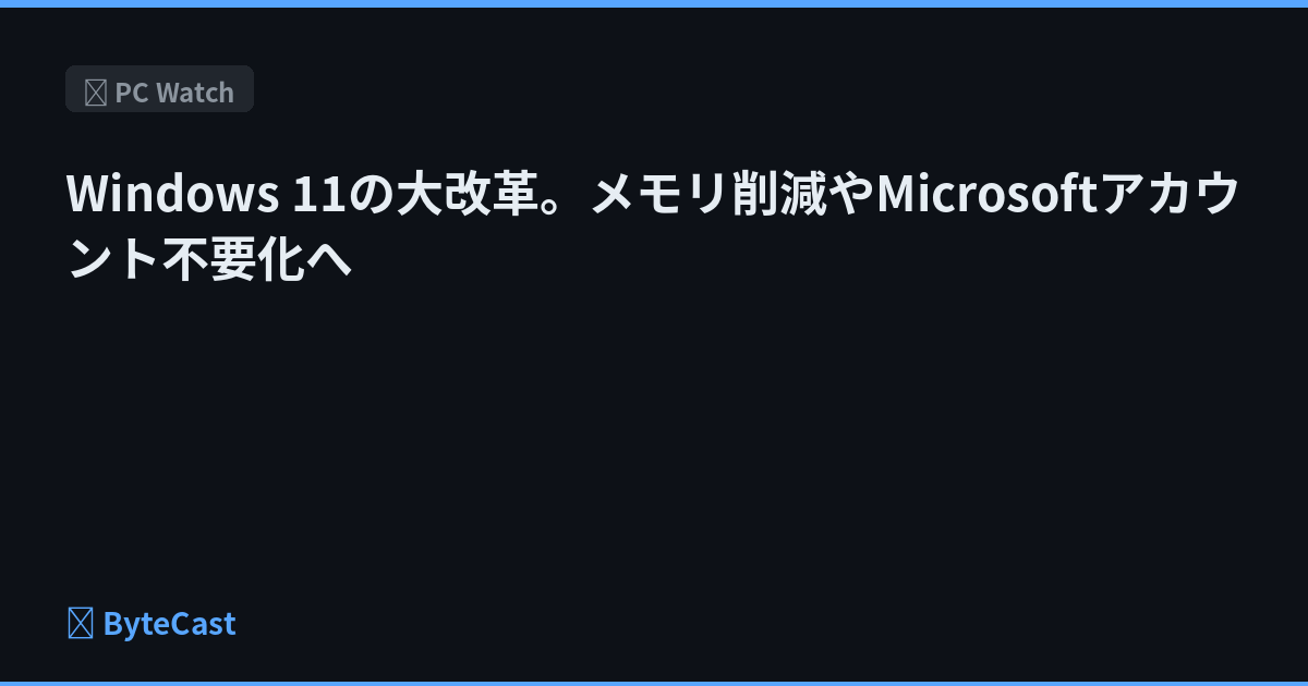 Windows 11の大改革。メモリ削減やMicrosoftアカウント不要化へ