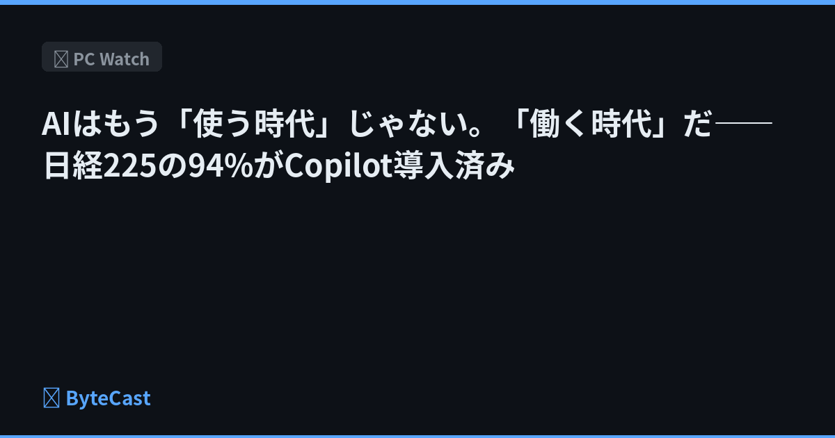 AIはもう「使う時代」じゃない。「働く時代」だ――日経225の94%がCopilot導入済み