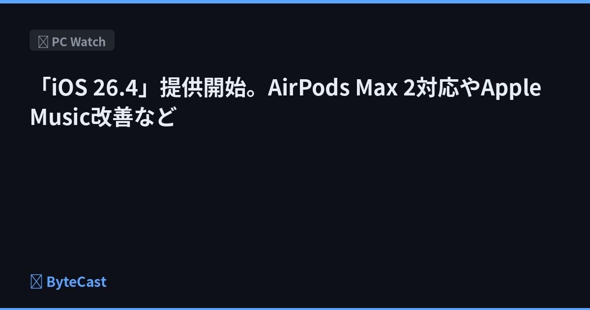 Appleは、「iOS 26.4」および「iPadOS 26.4」を提供開始した。Apple Musicを始めとした機能改善や、AirPods Max 2への対応などが行なわれている。