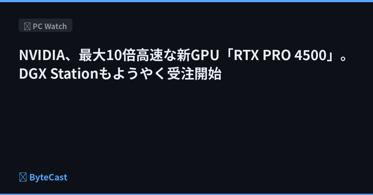 NVIDIA、最大10倍高速な新GPU「RTX PRO 4500」。DGX Stationもようやく受注開始