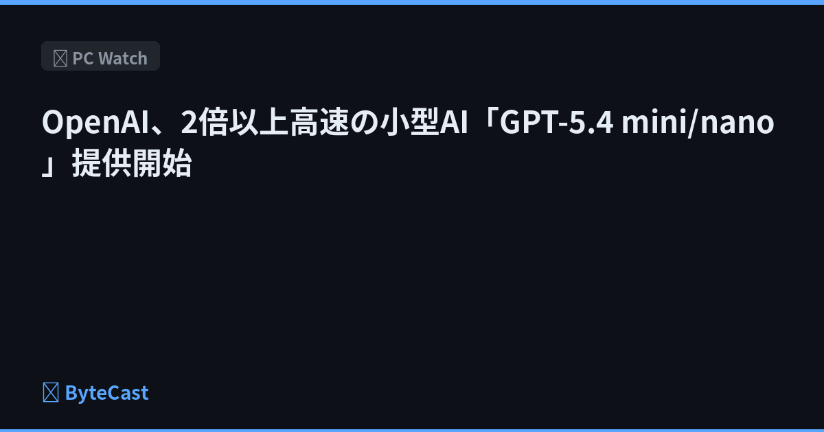OpenAI、2倍以上高速の小型AI「GPT-5.4 mini/nano」提供開始