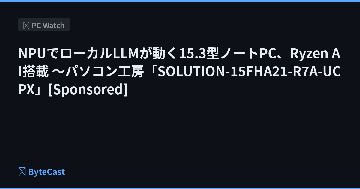 NPUでローカルLLMが動く15.3型ノートPC、Ryzen AI搭載 ~パソコン工房「SOLUTION-15FHA21-R7A-UCPX」[Sponsored]