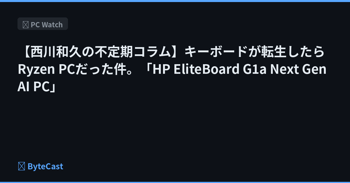 【西川和久の不定期コラム】キーボードが転生したらRyzen PCだった件。「HP EliteBoard G1a Next Gen AI PC」