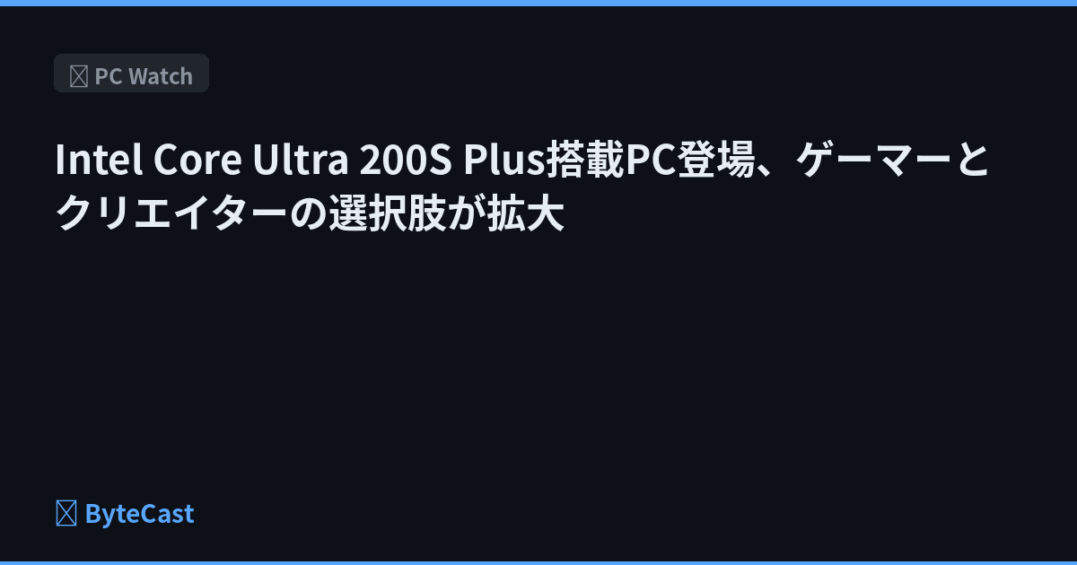 Intel Core Ultra 200S Plus搭載PC登場、ゲーマーとクリエイターの選択肢が拡大