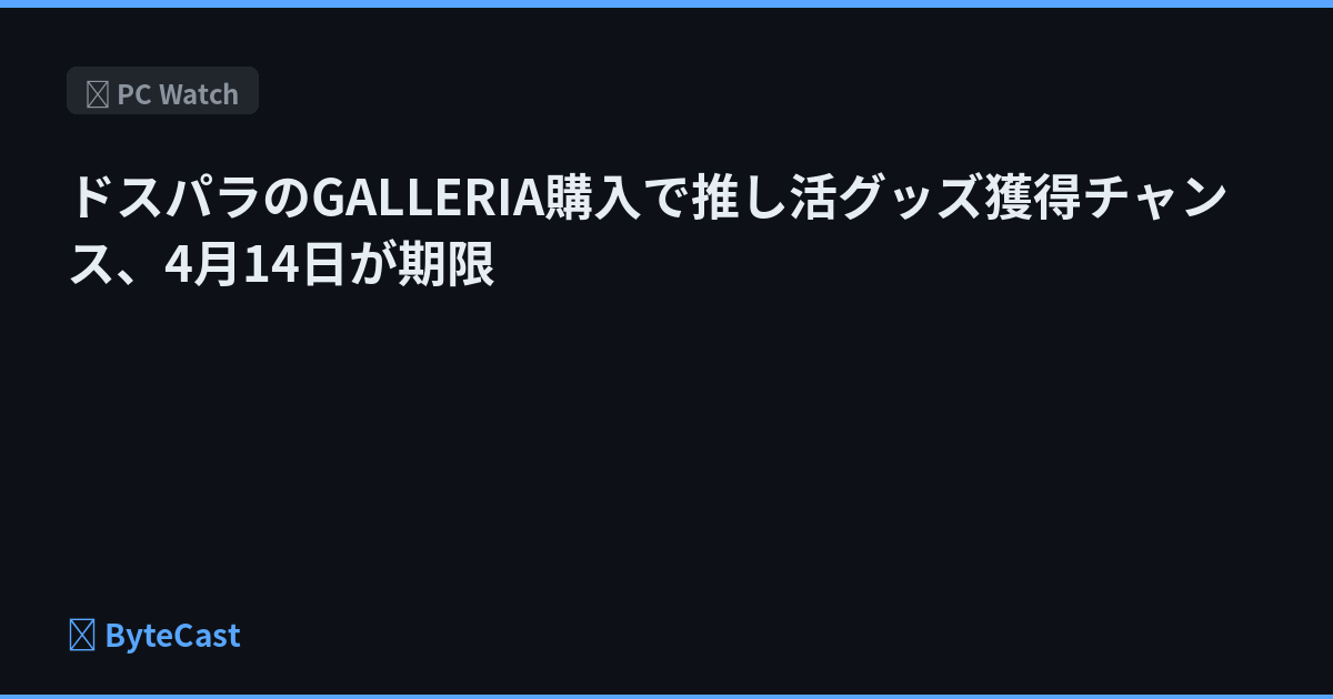 ドスパラのGALLERIA購入で推し活グッズ獲得チャンス、4月14日が期限