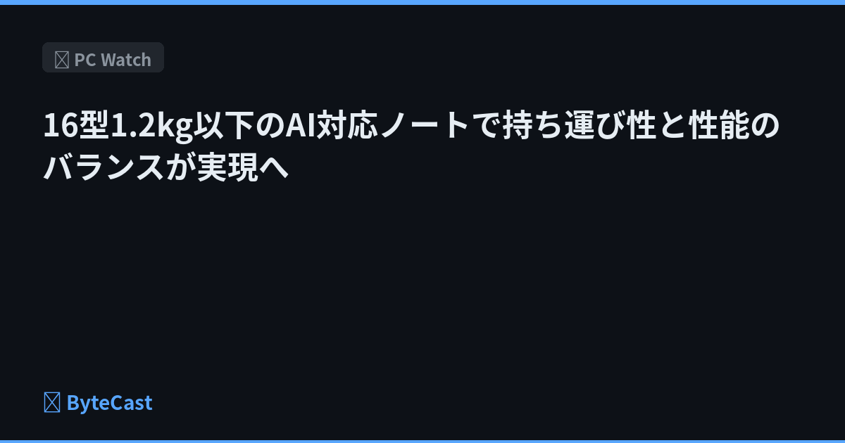 16型1.2kg以下のAI対応ノートで持ち運び性と性能のバランスが実現へ