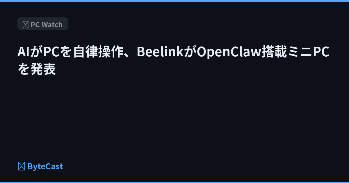 AIがPCを自律操作、BeelinkがOpenClaw搭載ミニPCを発表