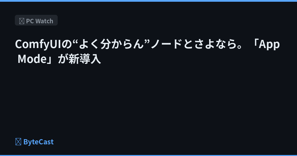 ComfyUIの“よく分からん”ノードとさよなら。「App Mode」が新導入