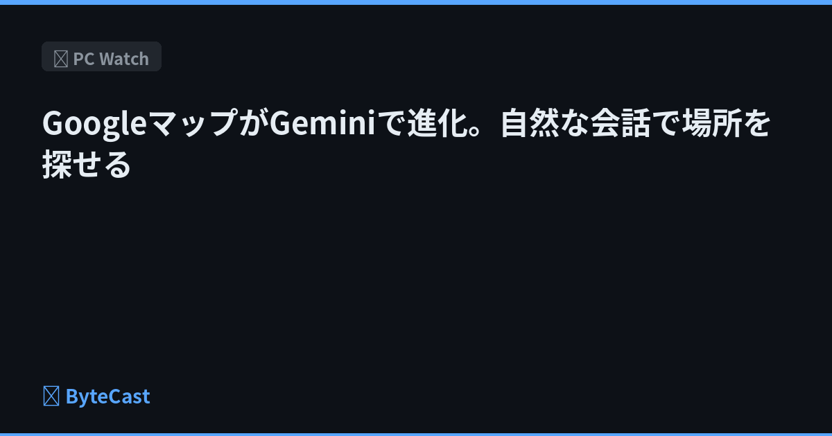 Googleは3月12日(米国時間)、GoogleマップにGeminiを統合し、さまざまな質問をマップ上で尋ねられる「Ask Maps」の実装を発表した。この機能は現在、米国とインドのAndroid/iOS版で提供開始しており、デスクトップ版も近日中に提供予定。