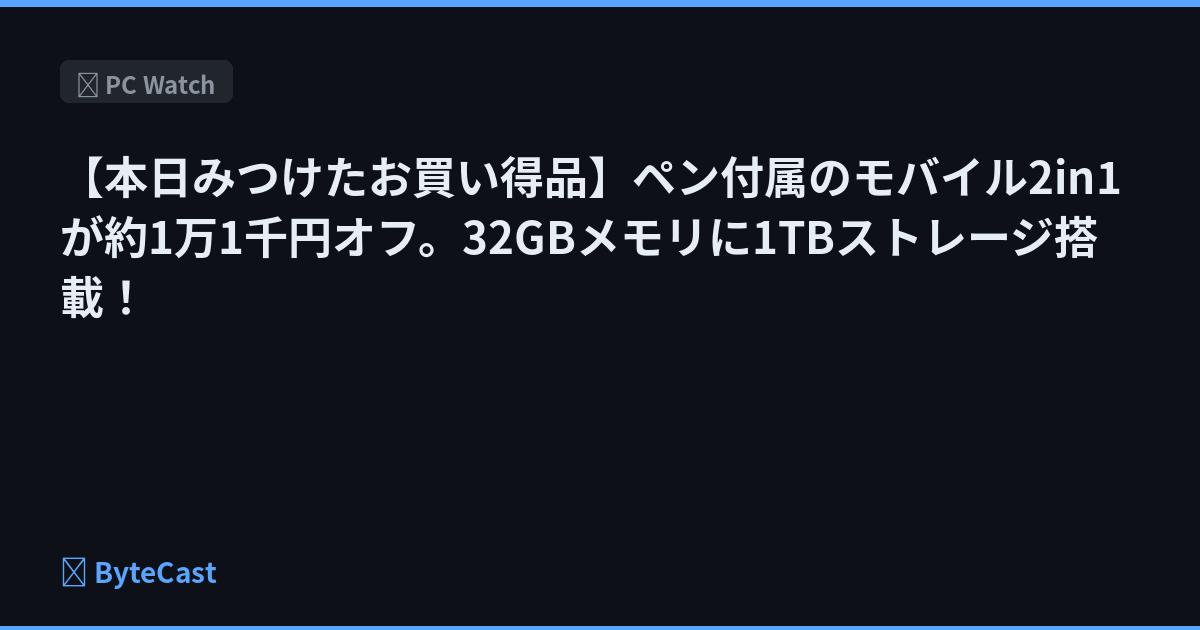 【本日みつけたお買い得品】ペン付属のモバイル2in1が約1万1千円オフ。32GBメモリに1TBストレージ搭載!
