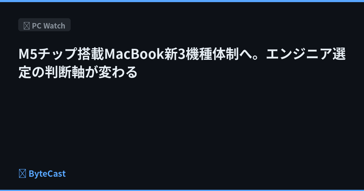 M5チップ搭載MacBook新3機種体制へ。エンジニア選定の判断軸が変わる