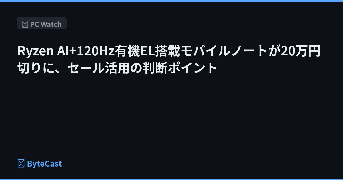 Ryzen AI+120Hz有機EL搭載モバイルノートが20万円切りに、セール活用の判断ポイント