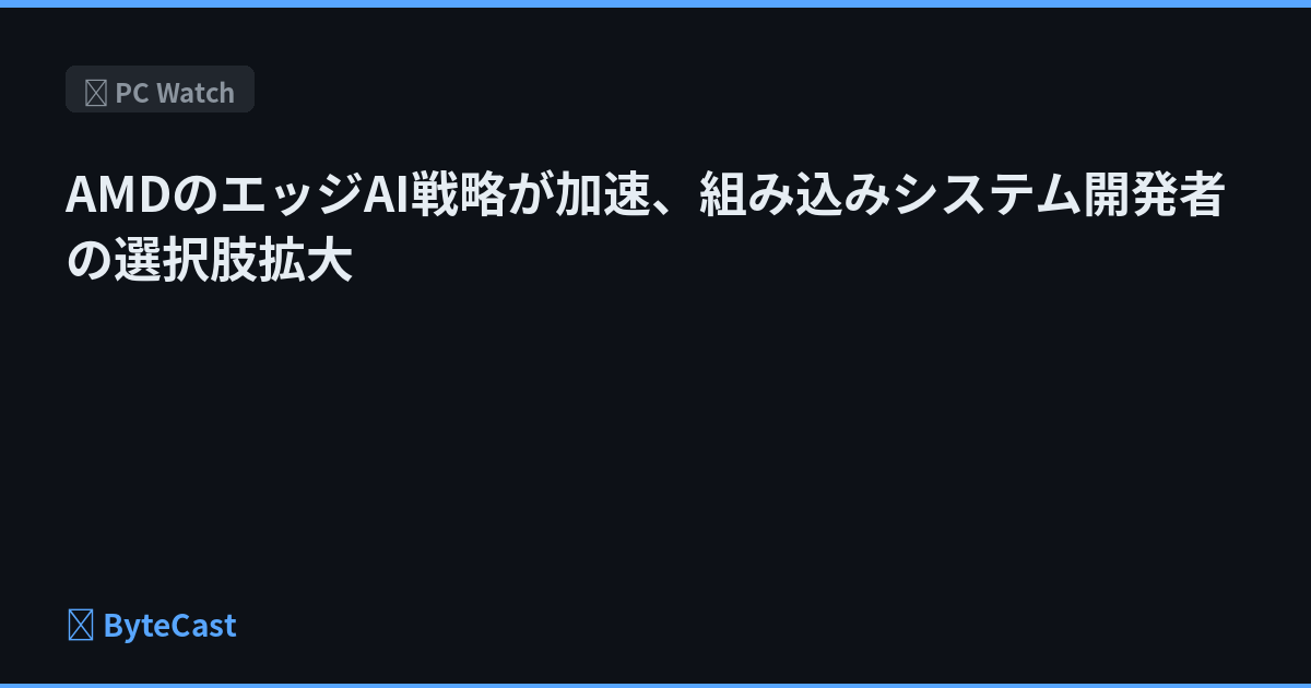 AMDがRyzen AI Embedded P100シリーズを拡充し、AI性能を2倍超に強化。エッジAI実装の敷居が低下し、組み込みシステム開発に新たな可能性が生まれつつあります。