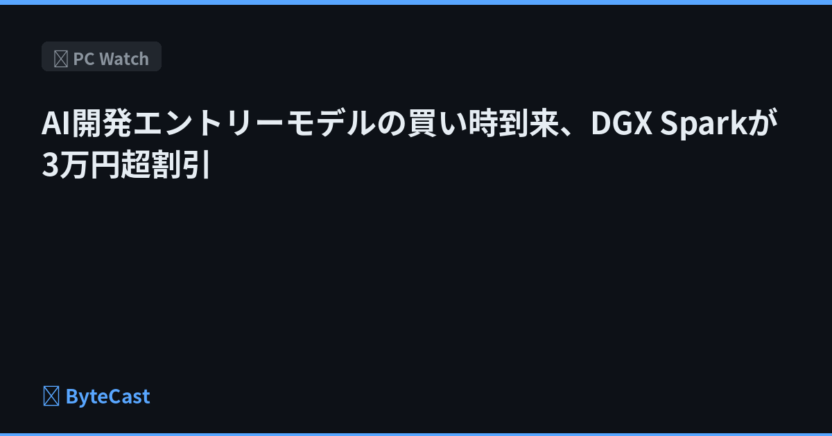 AI開発エントリーモデルの買い時到来、DGX Sparkが3万円超割引