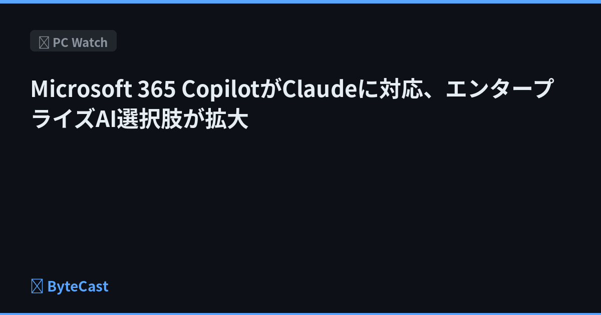 MicrosoftがCopilotでAnthropicのClaudeを統合。エンタープライズAIツールの競争が加速し、ユーザーは複数LLMの選択が可能に。