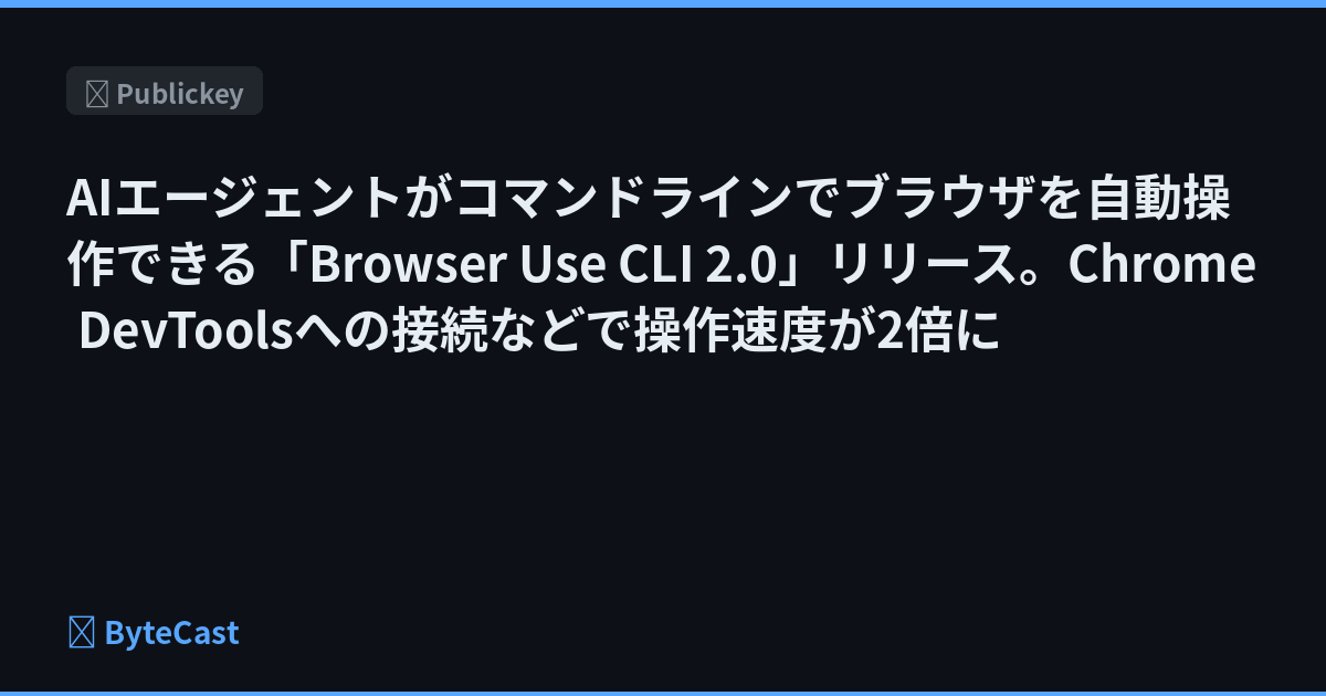AIエージェントがコマンドラインでブラウザを自動操作できる「Browser Use CLI 2.0」リリース。Chrome DevToolsへの接続などで操作速度が2倍に