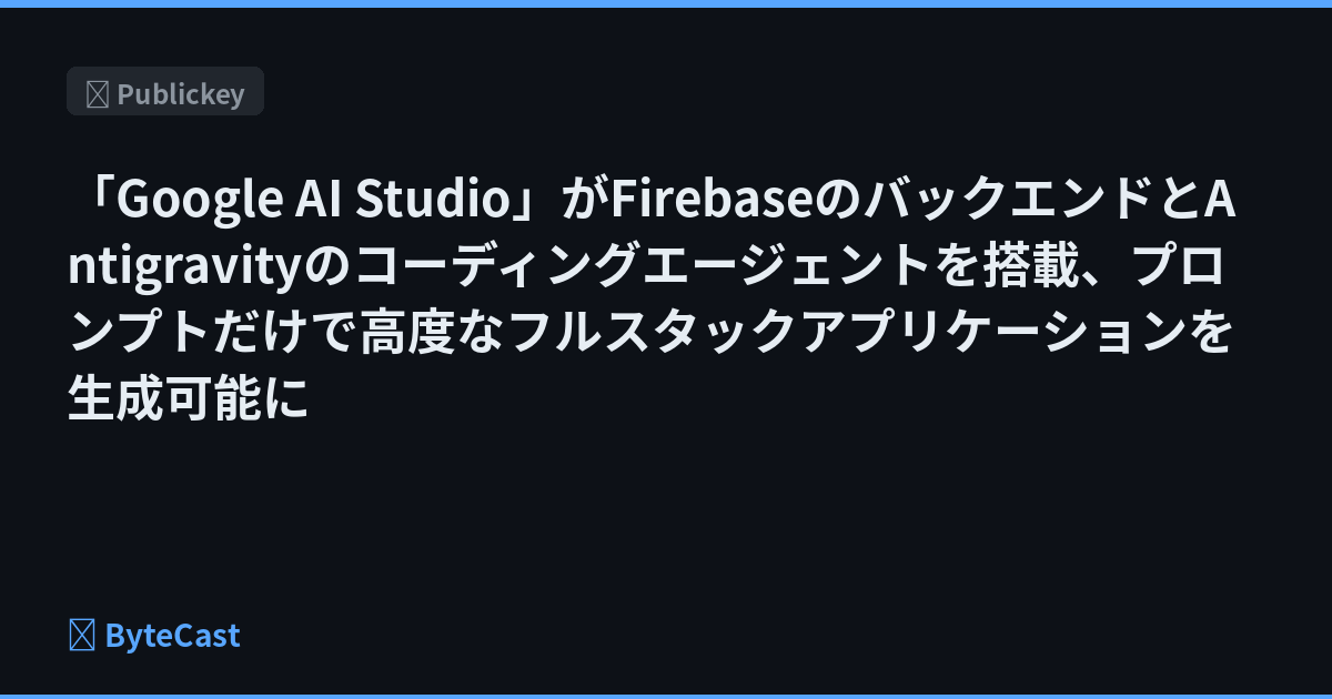「Google AI Studio」がFirebaseのバックエンドとAntigravityのコーディングエージェントを搭載、プロンプトだけで高度なフルスタックアプリケーションを生成可能に