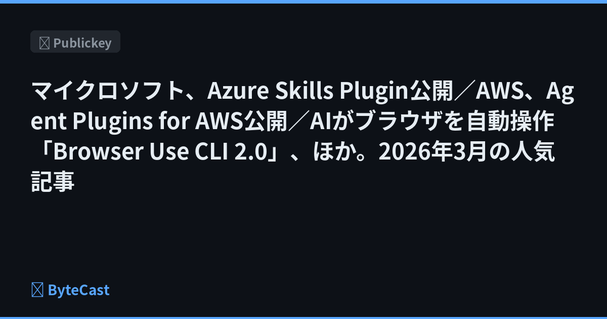 マイクロソフト、Azure Skills Plugin公開/AWS、Agent Plugins for AWS公開/AIがブラウザを自動操作「Browser Use CLI 2.0」、ほか。2026年3月の人気記事