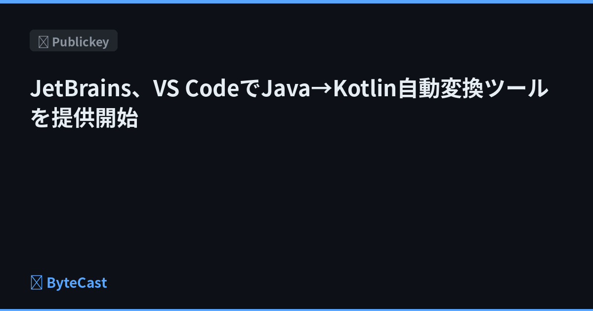 JetBrainsがVS Code向けJava to Kotlinコンバータをリリース。Kotlin採用を加速させる開発環境が整備され、レガシーJavaコード資産の移行障壁が低下する可能性があります。