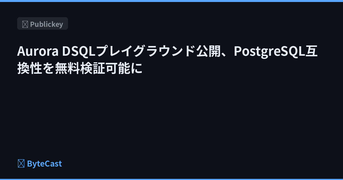 Aurora DSQLプレイグラウンド公開、PostgreSQL互換性を無料検証可能に