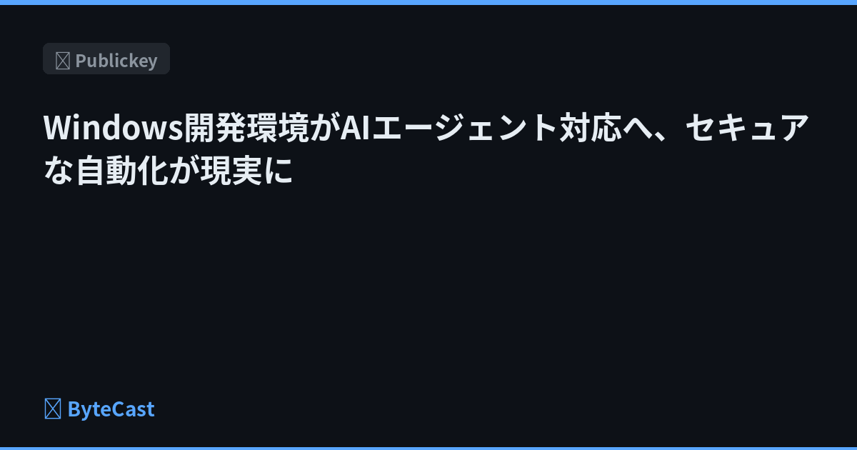 Windows開発環境がAIエージェント対応へ、セキュアな自動化が現実に