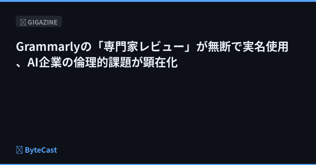 Grammarlyの新機能が実在人物を無断で「専門家」として表示する問題が指摘。AI企業における肖像権・プライバシー利用の法的・倫理的リスクが浮き彫りに。