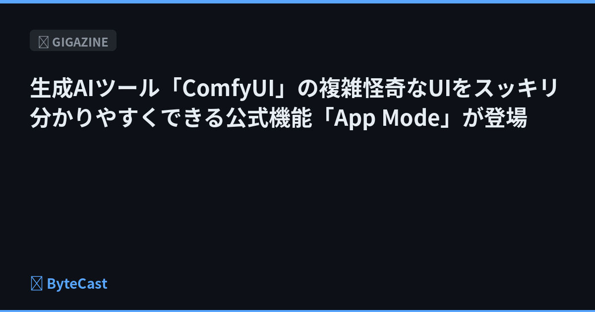 生成AIツール「ComfyUI」の複雑怪奇なUIをスッキリ分かりやすくできる公式機能「App Mode」が登場