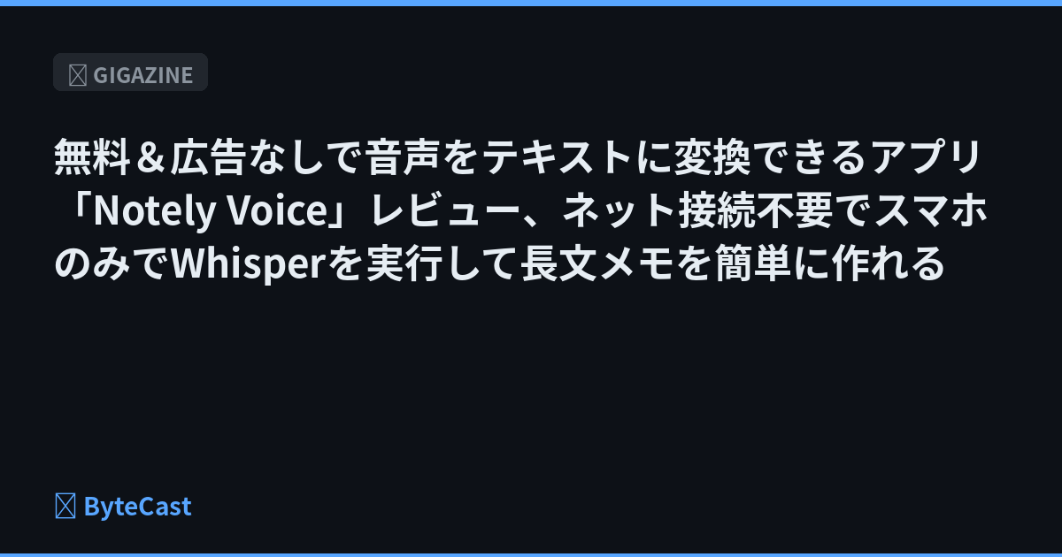 無料&広告なしで音声をテキストに変換できるアプリ「Notely Voice」レビュー、ネット接続不要でスマホのみでWhisperを実行して長文メモを簡単に作れる