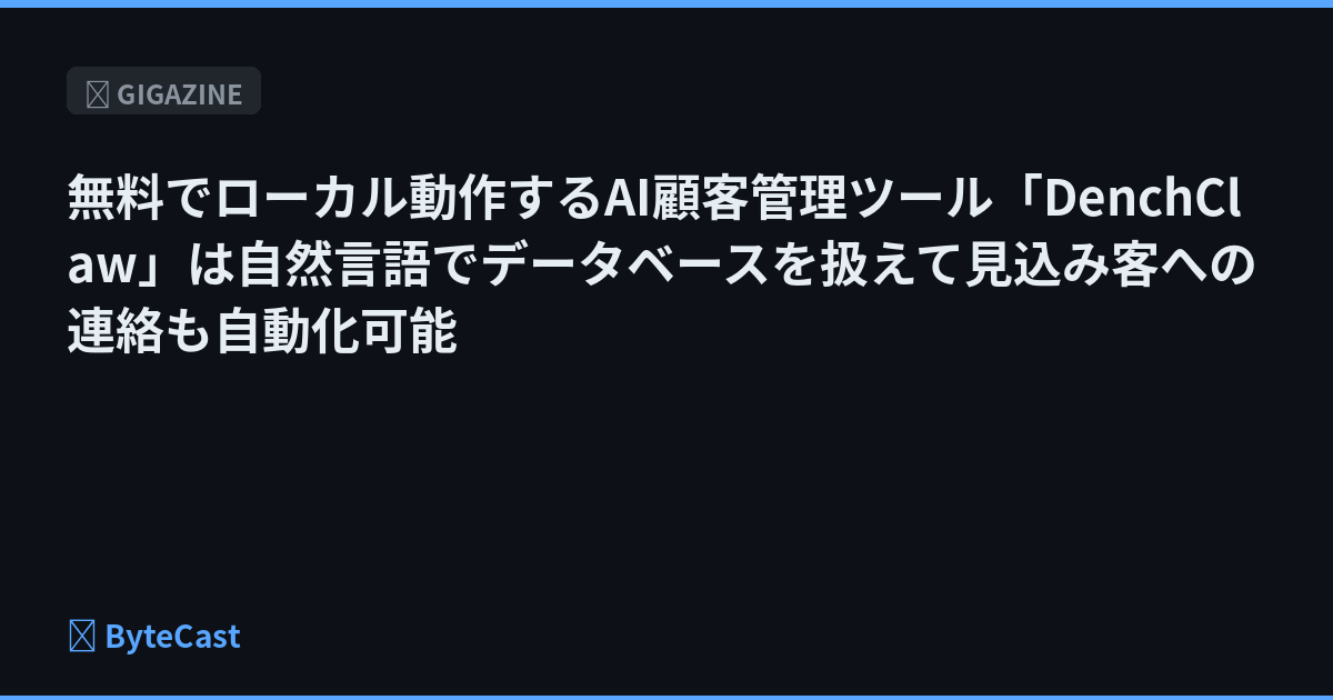 「顧客データはクラウドに預けたくないが、AIで整理や営業作業は自動化したい」というニーズを狙ったローカル動作型のAI CRM(顧客管理ツール)「DenchClaw」が登場しました。