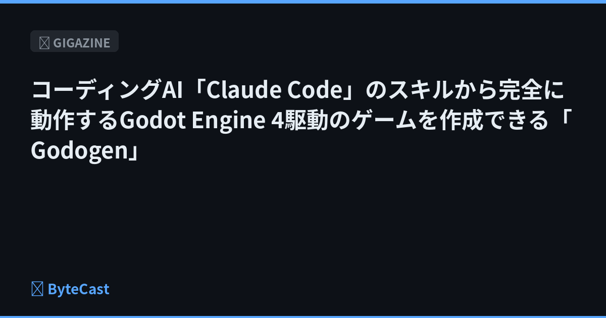コーディングAI「Claude Code」のスキルから完全に動作するGodot Engine 4駆動のゲームを作成できる「Godogen」