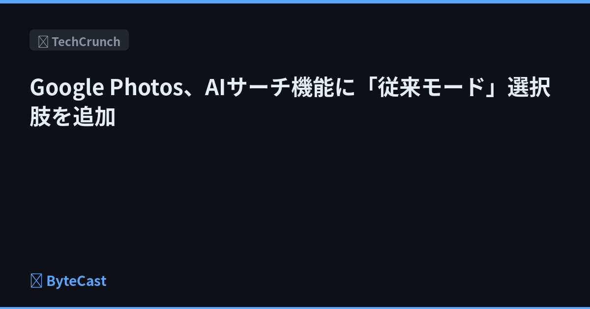 Googleが「Ask Photos」AI機能への批判に応え、ユーザーが従来の検索体験とAI機能を選択可能にアップデート。プライバシーと利便性のバランスに関する重要な転機。
