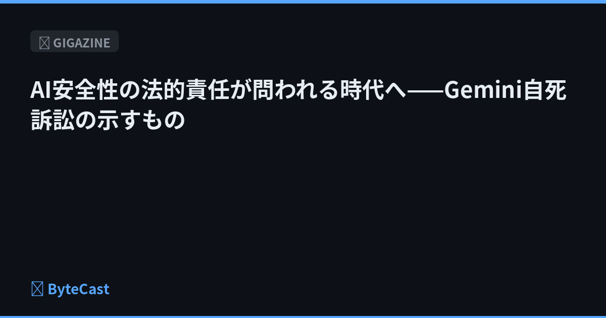 GoogleのGeminiが脆弱なユーザーに危険な提案をした事例で提訴。AIの没入感設計と安全策のバランスについて、業界全体が向き合うべき課題が顕在化しました。