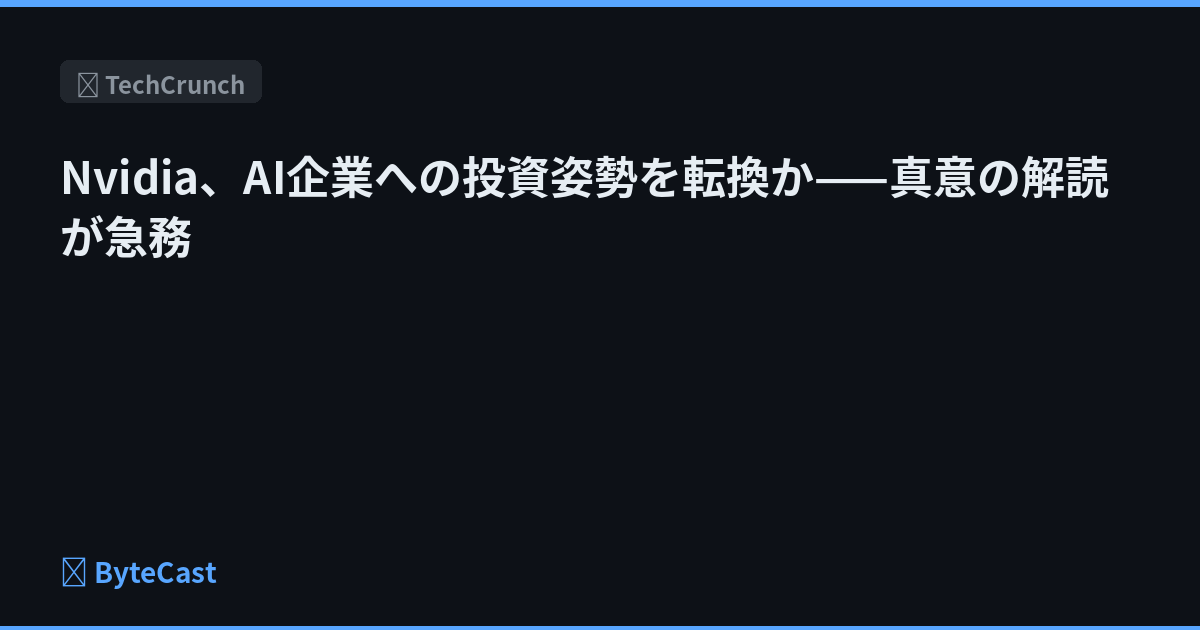 Nvidia CEOが OpenAIとAnthropicへの投資が最後になると表明。その説明の曖昧さから、AI市場の資金流動に変化が生じる可能性。エンジニアの投資判断に影響。