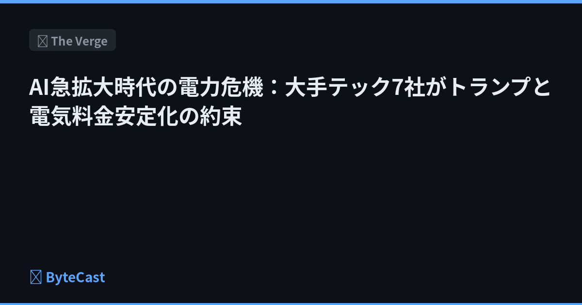 Google、Meta、Microsoft等7大テック企業がAIデータセンター拡大に伴う電力料金高騰懸念に対応。トランプ政権と電力料金保護誓約に署名した背景と影響を解説。