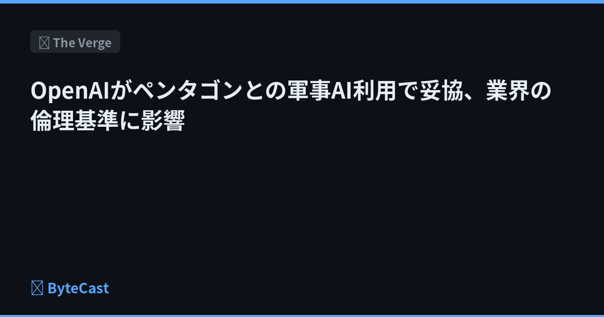 OpenAIがペンタゴンとの軍事AI利用で妥協、業界の倫理基準に影響