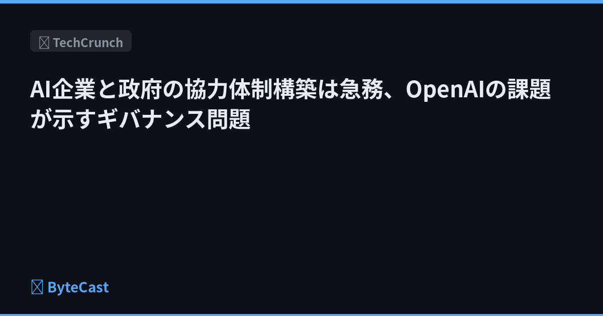 OpenAIが国家安全保障インフラ化する中、AI企業と政府の協力枠組みが不透明な状態。エンジニアと組織が準備すべき規制対応とガバナンス強化を解説。